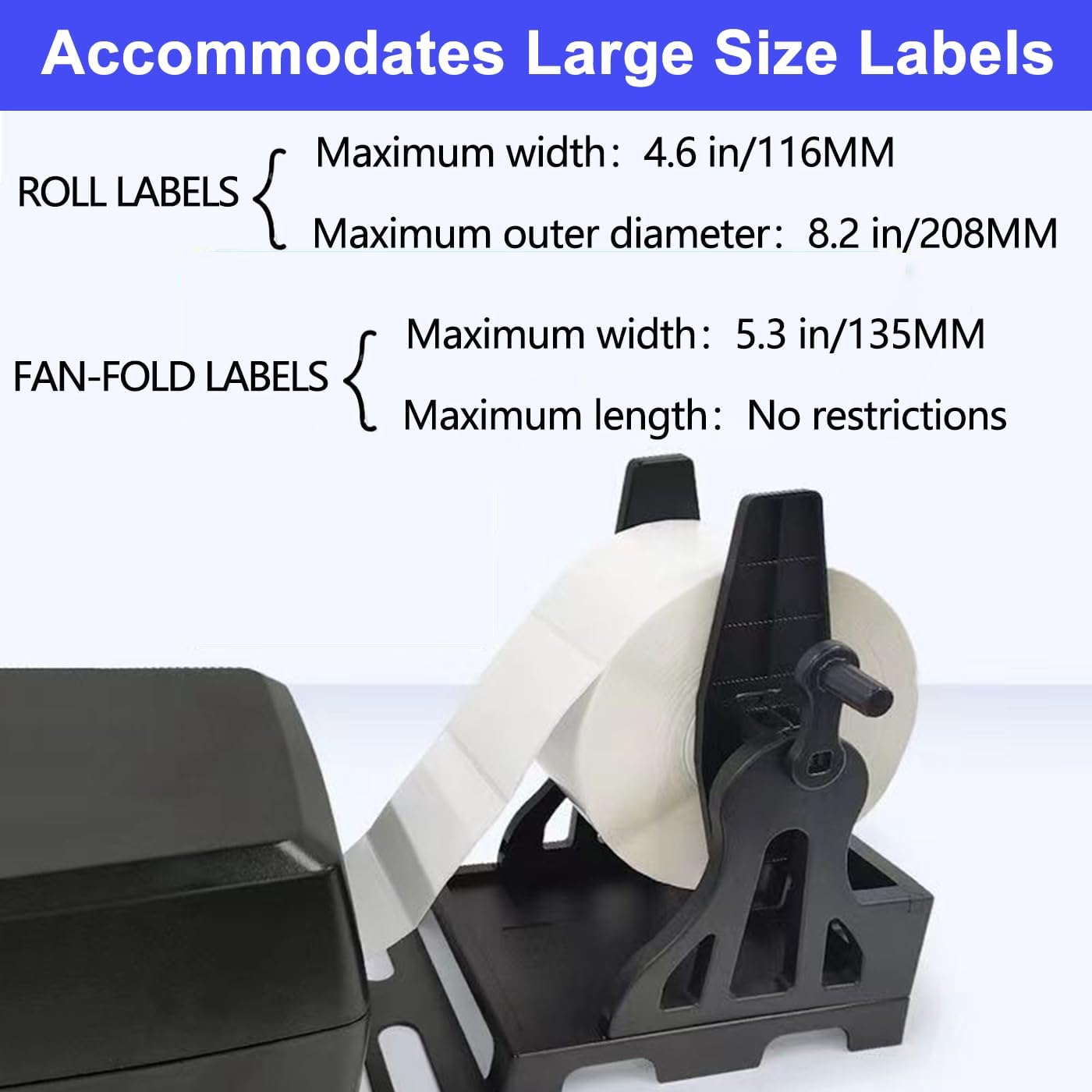 <Label Holder Rewinder, External Rolls Label Holder for Large Size Rolls and Fanfold Labels, Shipping Label Stand, Desktop Thermal Label Printer Accessory Supplies for Home, Office (Black)>